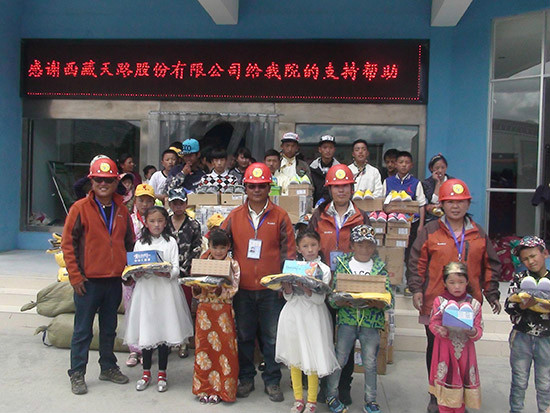 愛心零距離,暖情傳天下。為了讓孩子們幸三福地茁壯成長,百淀項目部向孩子們送去了價值5萬多元的187雙運動鞋、187套校服。鼓勵孩子們認真學習,長大后服務社會,建設西藏。