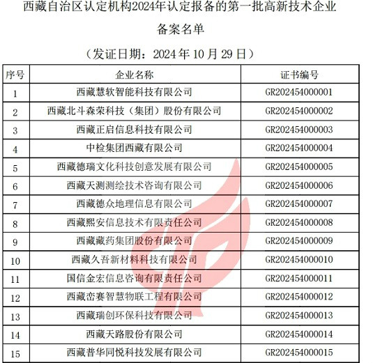 在復審認定過程中,公司提交并匯報了詳盡的高新技術企業認定材料,包括知識產權、科技成果轉化、研發投入、研發人員構成等關鍵信息。主管單位西藏自治區科學技術廳也對公司的技術創新能力、研發成果、財務狀況等方面進行了全面評估。經過嚴格的復審認定程序,公司順利地再次被認定為高新技術企業。這一認定不僅是對公司前期科技創新成果的肯定,也是對公司未來持續創新發展的鼓勵和鞭策。