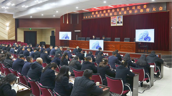 為深入貫徹落實(shí)黨的二十屆三中全會(huì)精神,進(jìn)一步推進(jìn)黨風(fēng)廉政建設(shè),12月9日,西藏天路股份有限公司紀(jì)委召開2024年第四期廉潔從業(yè)警示教育大會(huì),公司黨委書記、董事長頓珠朗加參加會(huì)議并講話,黨委專職副書記、董事、工會(huì)主席西虹主持會(huì)議。