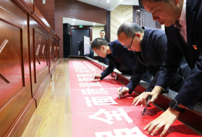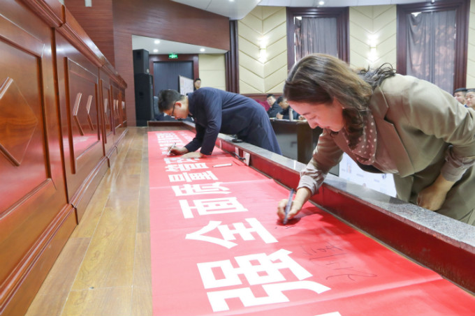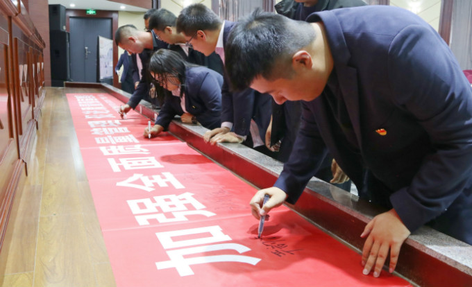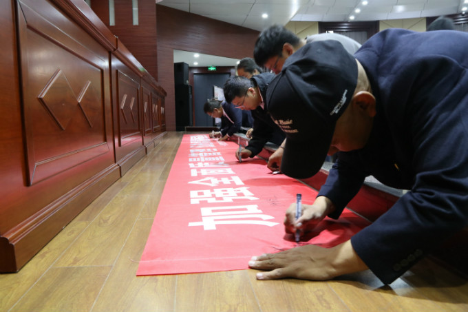 會后,全體參會人員在“質量月”主題橫幅上簽字,鄭重做出質量承諾。