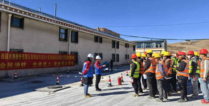 2025年11月9日是全國第34個消防日,為深入踐行“全民消防、生命至上——安全用火用電”核心主題,切實強化項目部管理人員、施工班組及小區居民的消防安全紅線意識,全面提升應急處置能力,那曲市老舊小區改造項目部以消防日為契機,在團結小區老舊小區改造施工現場組織開展消防演練活動。