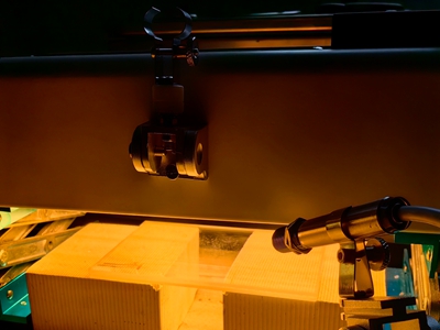 固化PP料無(wú)塵裁切可利用聚焦加熱器對(duì)半固化PP材料進(jìn)行加熱,結(jié)合圓刀切割技術(shù)實(shí)現(xiàn)無(wú)塵裁切。其主要原理是將紅外加熱技術(shù)與傳統(tǒng)的裁切方法相結(jié)合,利用紅外聚焦高溫加熱,穿透力強(qiáng),加熱速度快,對(duì)切割處的半固化片先加熱再裁切,從而減少切割過(guò)程中產(chǎn)生的粉塵,解決一直以來(lái)困擾業(yè)界的裁切半固化片粉塵及毛邊問(wèn)題,提高生產(chǎn)效率的同時(shí)保證了操作人員的健康。